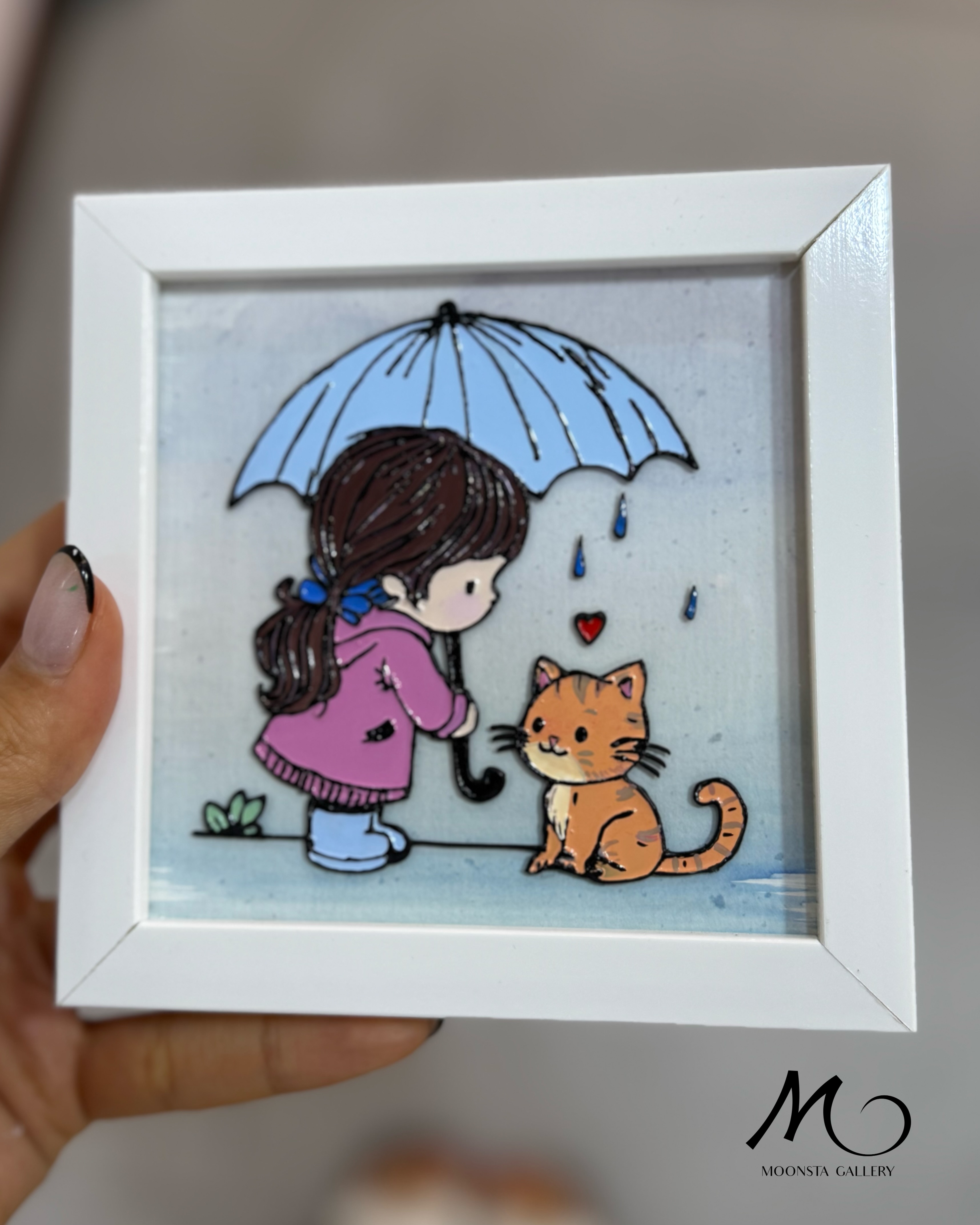 مینی تابلو ویترای “دخترکوچولو با گربه”